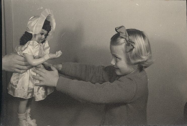 This photograph relates to products and promotions of the L.J. Sterne Doll Company (1939-1971), a Melbourne doll and toy manufacturer founded by Austrian migrants Leo and Hilda Sterne.