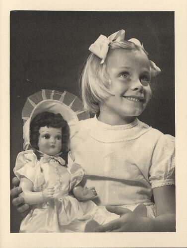 This photograph relates to products and promotions of the L.J. Sterne Doll Company (1939-1971), a Melbourne doll and toy manufacturer founded by Austrian migrants Leo and Hilda Sterne.