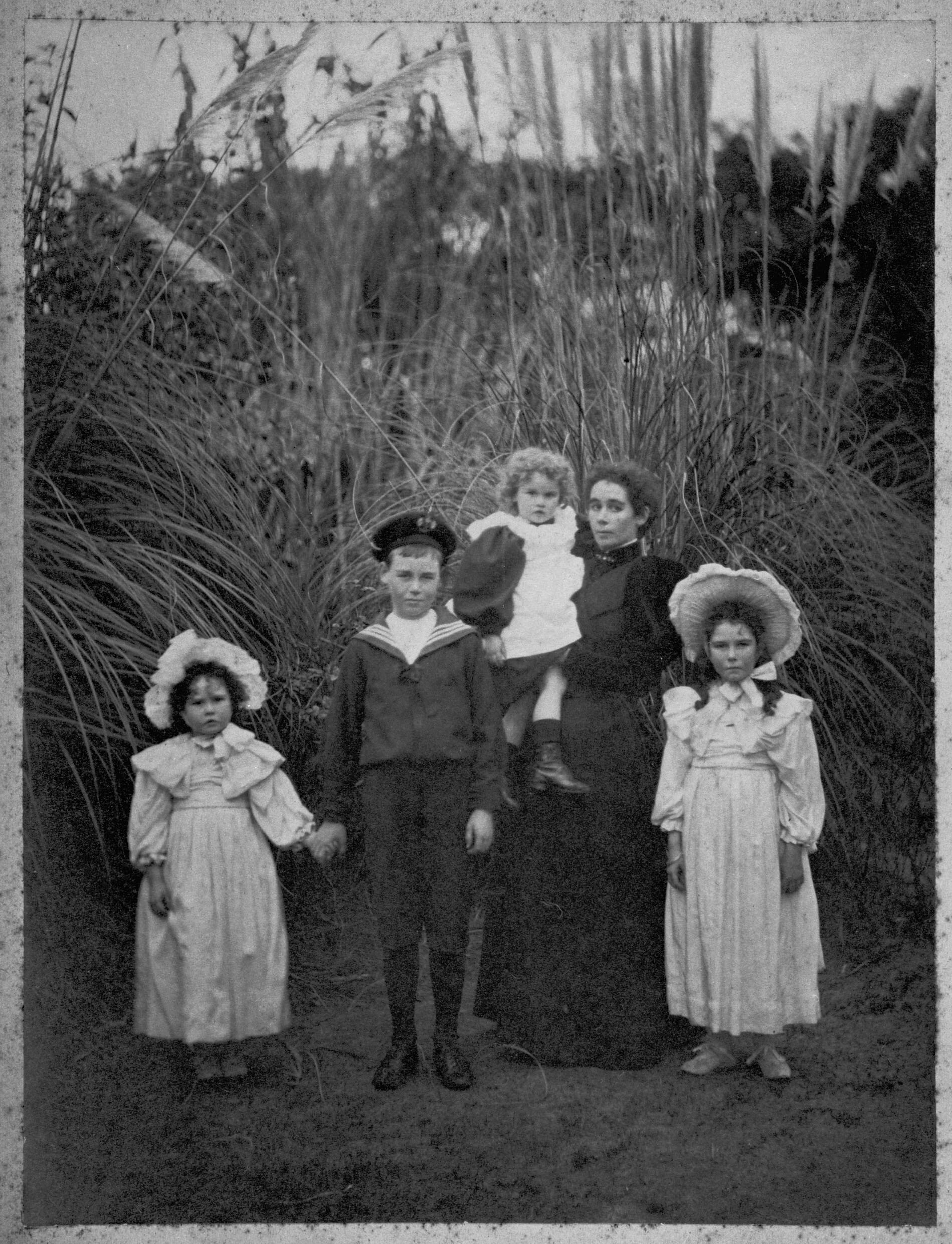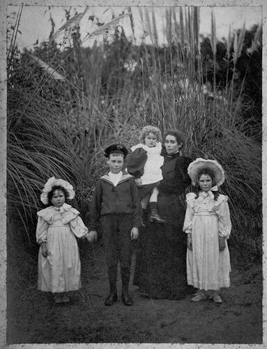 Black and white copy negative of a photograph that belonged to Betty Anderson of Kew, and depicts Betty as a child with her family.