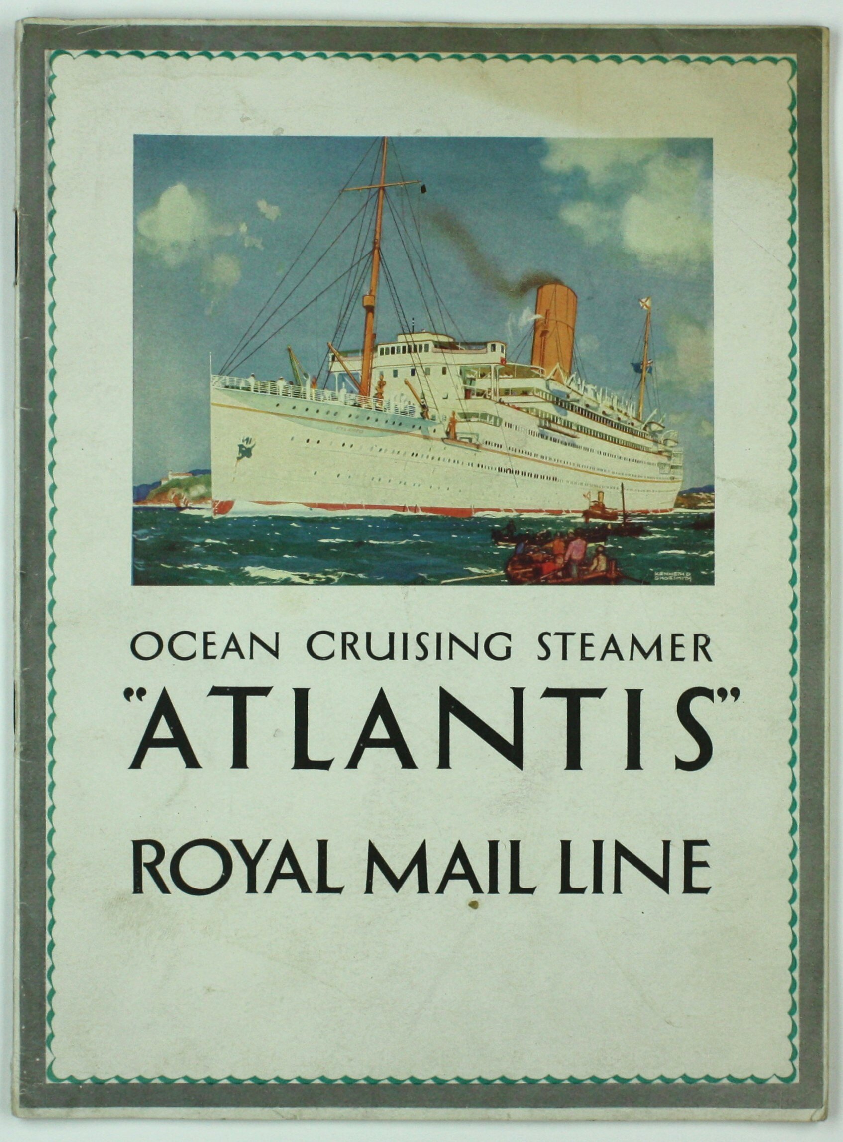 Promotional booklet for the 'Atlantis', the Royal Mail Line Ocean Cruising Steamer which Joan Fogarty received during her voyage to Australia as a war bride from England in 1946. The booklet features a colour illustration of the ship on the cover and photographs of shipboard interiors and scenes from various ports.