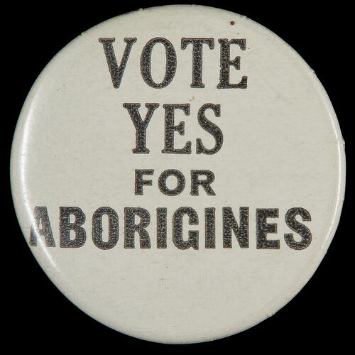 Badge advocating for a 'Yes' vote in the Australian national referendum in 1967.