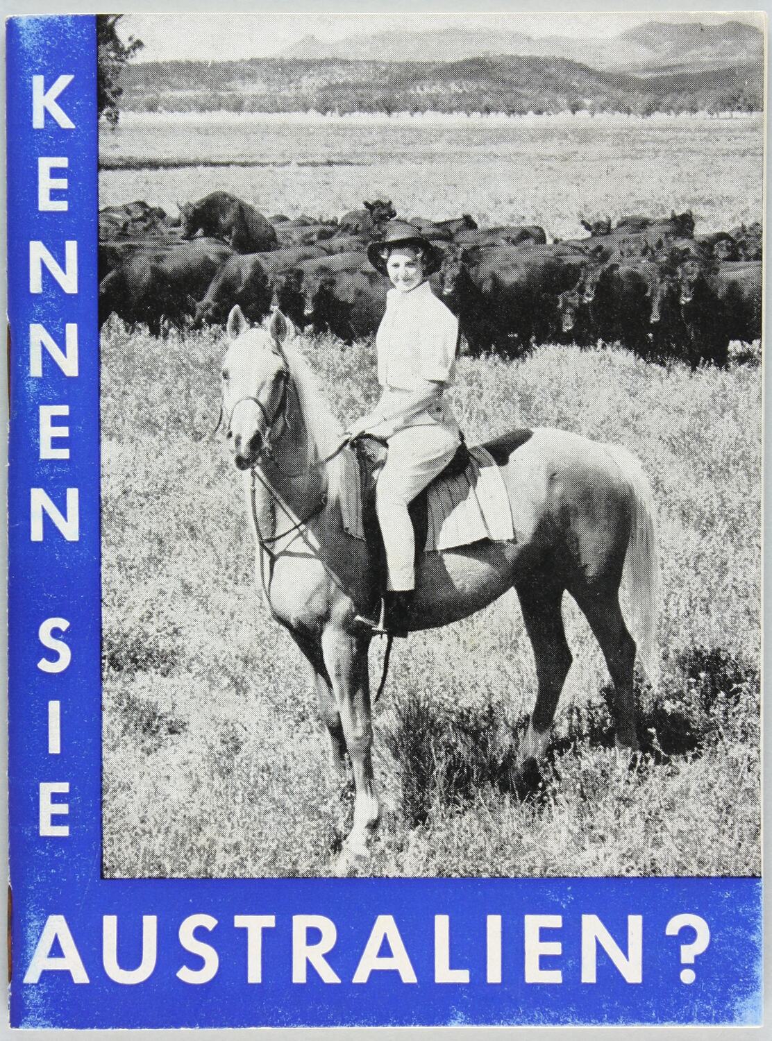 Booklet entitled 'Kennen Sie Australien?' ['Do You Know Australia?'] issued in German by the Commonwealth of Australia to provide information to intending migrants to Australia from Germany, Austria and Switzerland. It was obtained by Dorothea Huber [nee Freitag and later Dunzinger] in preparation for her migrant voyage from Austria to Melbourne onboard the Cogedar Line ship 'Flaminia' in November 1959. The 64 page booklet provides information about life in Australia, including population, climate, employment and industry.