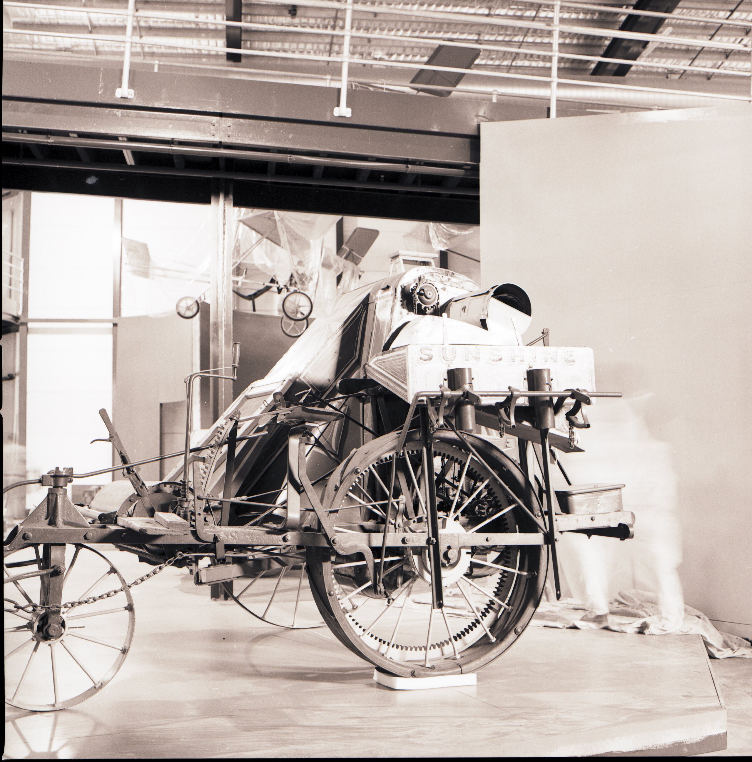 Sunshine Harvester in position during the installation of the Inventions exhibition at Scienceworks.