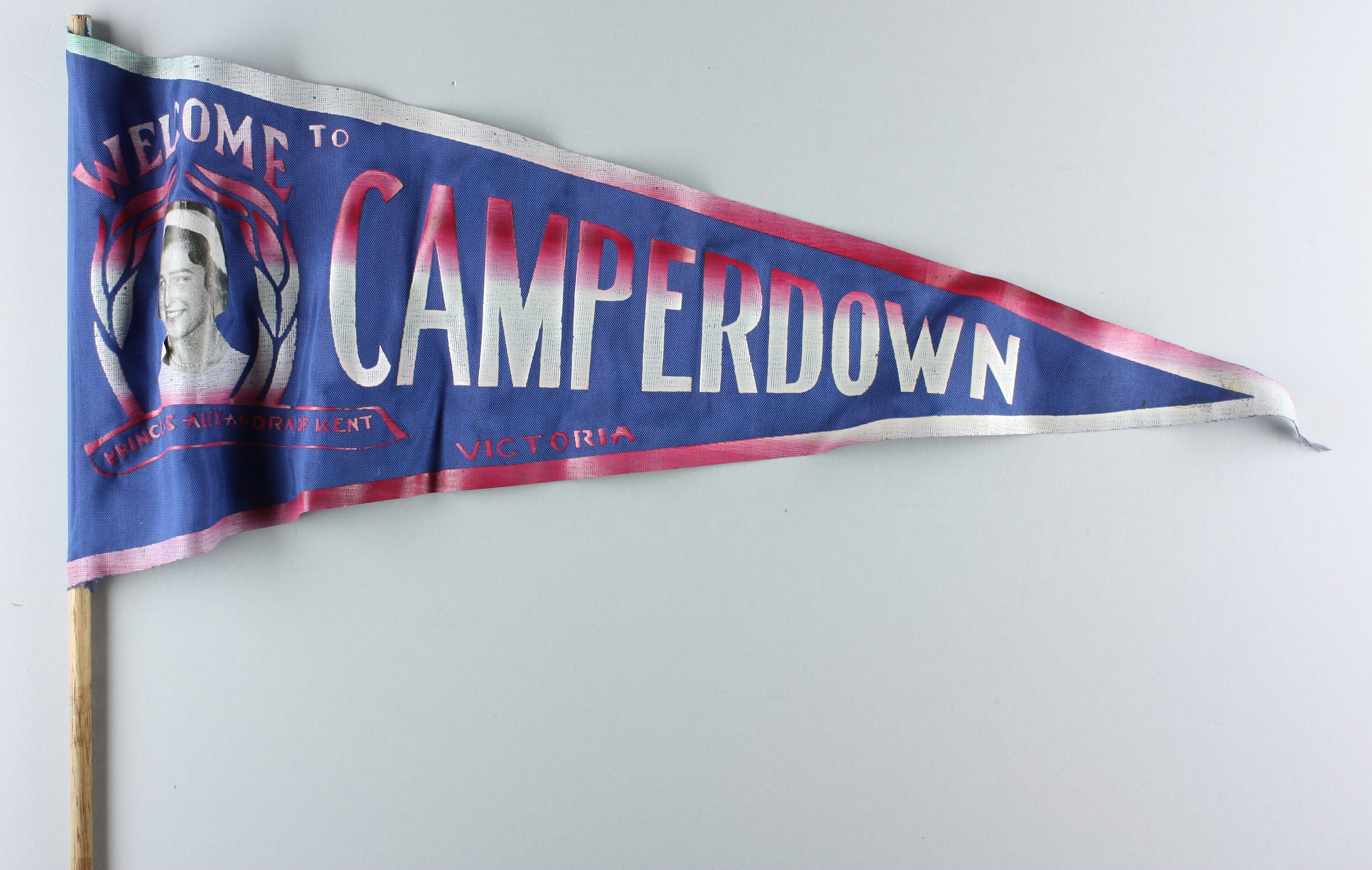 Souvenir pennant commemorating Princess Alexandra of Kent's visit to Camperdown, Victoria, in September 1959.