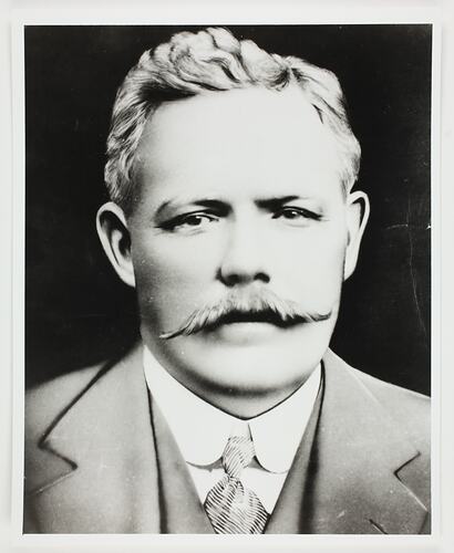 Portrait of H. V. McKay, 1912. McKay founded the McKay Sunshine Harvester enterprise which manufactured agricultural equipment, Sunshine, Australia.