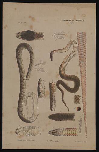 This plate forms part of the much larger Prodromus Collection. Many of the original illustrations in the collection informed the production of the two volume work 'The Prodromus of the Zoology of Victoria', Museum Victoria's first major publication commencing in 1878.