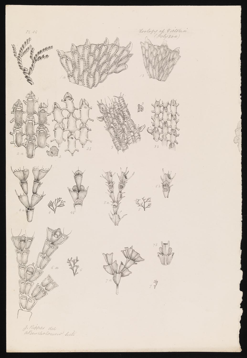 Pl.46 / Zoology of Victoria (Polyzoa) / J.Ripper del. A.Bartholomew lith / Prof.McCoy direct / C.Troedel & Co imp.