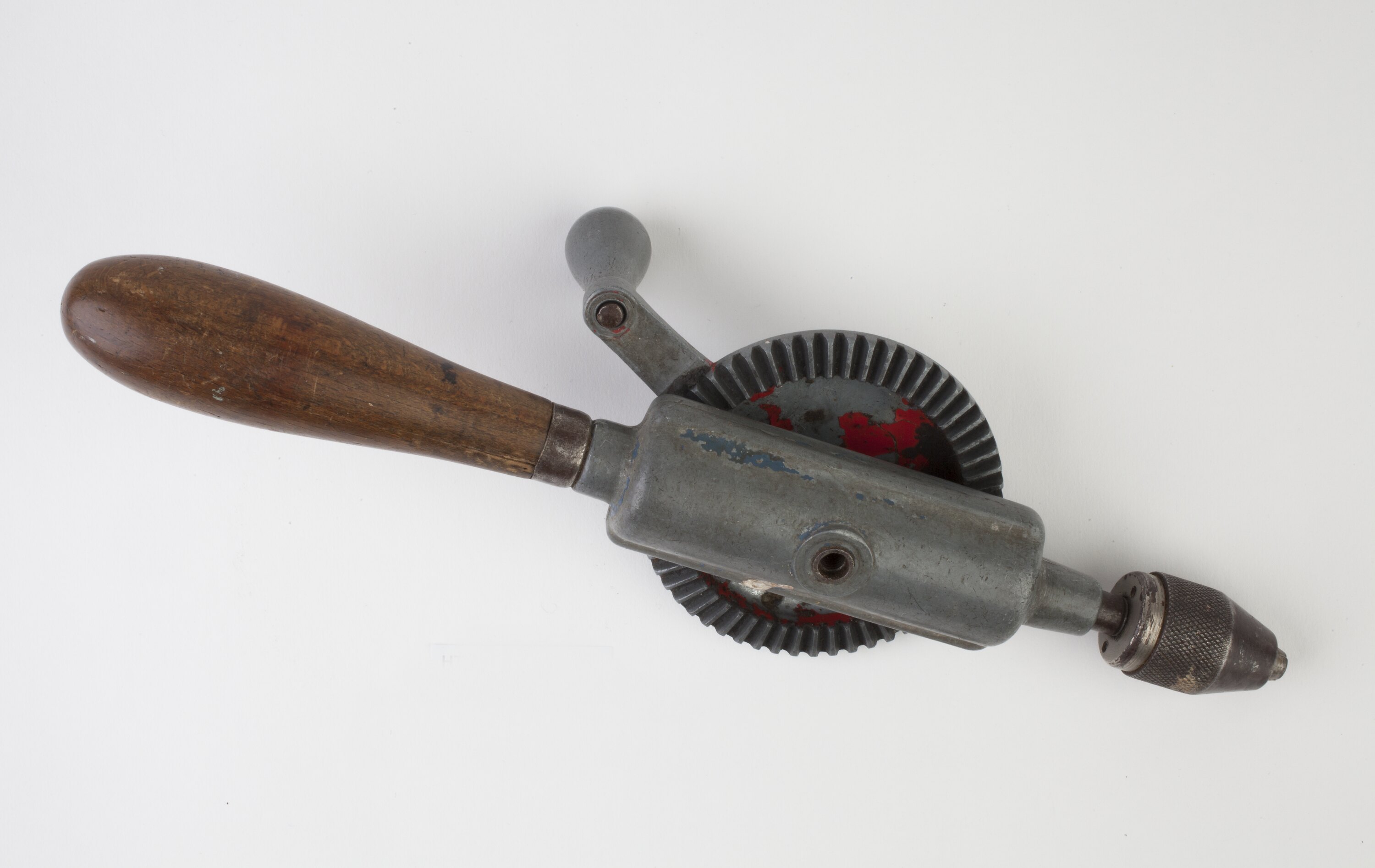 Hand drill, one of a number of hardware tools brought to Australia by Stanley Hathaway when he migrated from England in 1951. Stanley had been a mechanical engineer and then a hardware store owner in England, and worked for many years as a fitter and turner in the Ballarat area. He was a 'handyman' and built, with his wife Lucy's assistance, their first home in the Ballarat suburb of Wendouree.