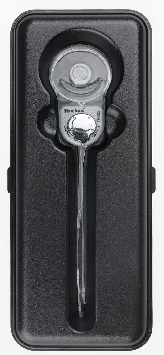 Demonstration model cochlear implant, Nucleus, manufactured by Cochlear Limited. A cochlear implant is a surgically implanted electronic device that provides a sense of sound to a person who is profoundly deaf or severely hard of hearing. The cochlear implant is often referred to as a bionic ear.