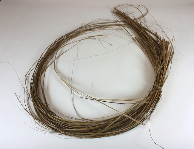 This rich collection of hand-woven baskets, tools and photographs tells stories of migration, settlement in Melbourne's northern suburbs, and traditional cultural practices through the baskets. This collection is particularly evocative because photographs document Giovanni 'D'Aprano at work making and sourcing materials for the baskets, as well as images relating to his life before migrating. It also enables the representation of male traditional cultural practices in the collection which is currently more dominated by examples of women's creative cultural activities and it compliments the Mazzarino basket weaving collection which collectively demonstrate regional stylistic differences.