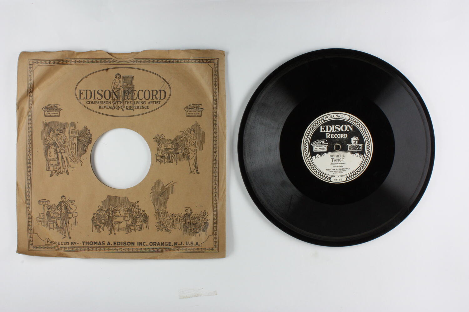 Side A: INDEX No. 24871 1/M 21 / EDISON RECORD / A PRODUCT OF EDISON LABORATORIES / 80887-L / TANGO / (Albeniz-Elman) / Violin Solo / ARCADIE BIRKENHOLZ / HERMAN NEUMAN / at the Piano / Made in U.S.A. / 18135 Side B: EDISON RECORD / A PRODUCT OF EDISON LABORATORIES / 80887-R / SERENADE / (Enrico Toselli, Op.6) / Violin Solo / ARCADIE BIRKENHOLZ / HERMAN NEUMAN / at the Piano / Made in U.S.A. / 18136 One side of sleeve: EDISON RECORD / (text and illustrations) Second side of sleeve: (text) / (Patents - list of years latest1918) / (text)