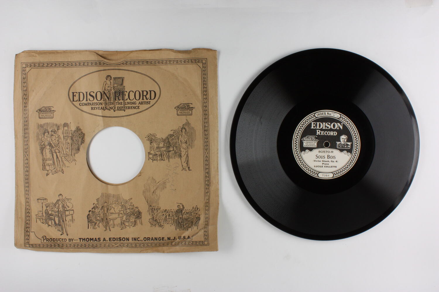 Side A: INDEX No. / EDISON RECORD / A PRODUCT OF THE EDISON LABORATORIES / 80570-R / SOUS BOIS / (Victor Staub, Op. 6) / Piano / LUCILE COLLETTE / 7264 Side B: INDEX No. / EDISON RECORD / A PRODUCT OF THE EDISON LABORATORIES / 80570-L / WALTZ IN C SHARP MINOR / (Chopin) / Piano / LUCILE COLLETTE / 7265