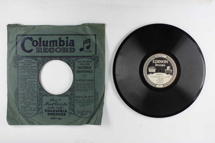 One of 200 disc recordings donated with an Edison gramophone diamond disc model 19.