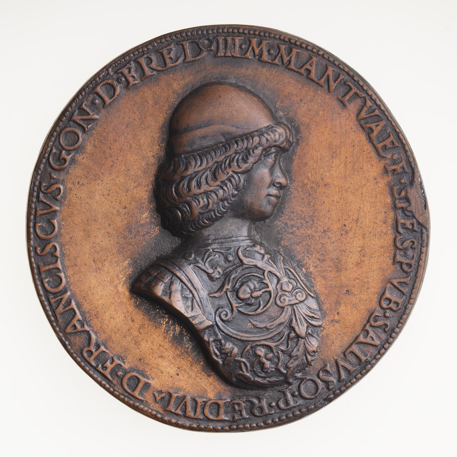Copy of a medal of Gianfrancesco III Gonzaga, Marquis of Mantua in two halves. The original medal was made before 1519 by Bartolommeo Melioli. This Electrotype copy made circa 1881 by Robert Ready The original medal was exhibited in the King's Library at the British Museum, London, in 1881 and is No. 50 in the catalogue of that exhibition. It is thought that this electrotype was produced in association with that exhibition and publication and acquired by the National Gallery of Victoria where it was displayed in the late 1880s.
