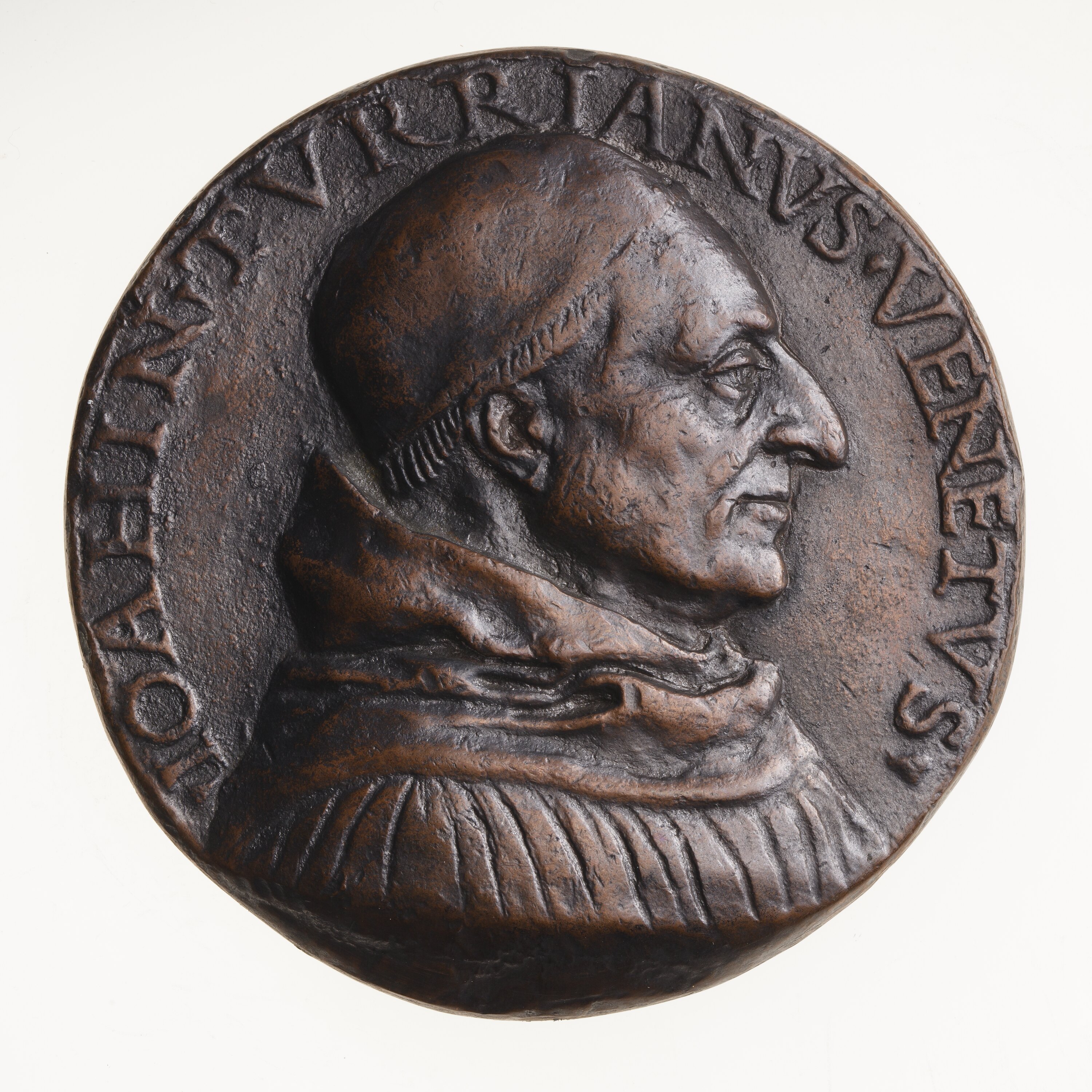 Copy of a medal of Joachim Turrianus (somtimes name given as Giochino Turriano). The original medal was made about 1500 (artist unknown). This Electrotype copy made circa 1881 by Robert Ready. The original medal was exhibited in the King's Library of the British Museum in 1881 and is No. 60 in the catalogue of that exhibition. It is thought that this electrotype as produced in association with that exhibition and publication and acquired by the National Gallery of Victoria where it was displayed in the late 1880s.