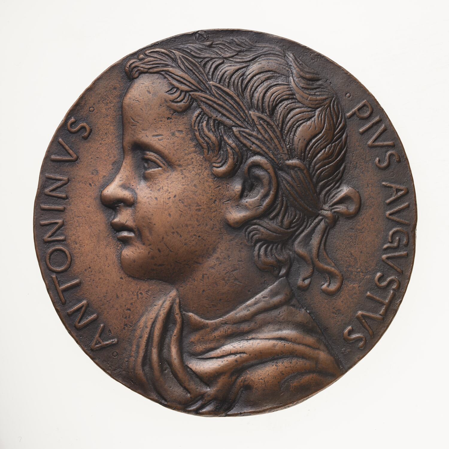 Copy of a medal depicting a young Roman Emperor known as Caracalla (Marcus Aurelius Antoninus Pius, born 188, Emperor 196-217). The original medal is attributed to the artist Giovanni Boldu was cast in 1466. This two piece electrotype copy was made circa 1881 by Robert Ready. This electrotype was not part of the British Museum's King's Gallery Exhibition of 1881. It's acquisition by the National Gallery of Victoria and thus Museum Victoria is yet to be traced. The electrotype is taken from the British Museum original Reg: 1881,0704.6 which is cast bronze. This electrotype in copper coated and toned.
