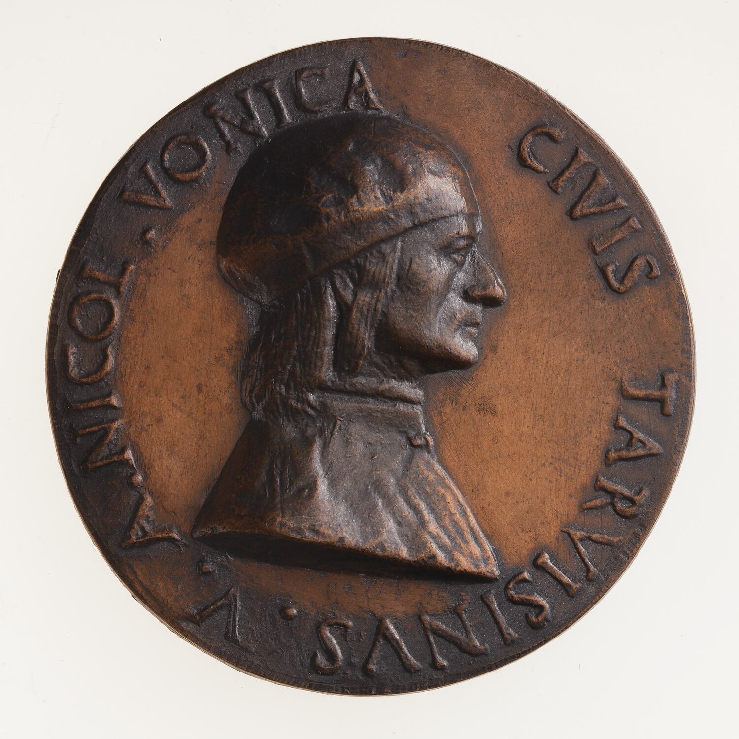 Copy of a medal depicting Niccolo Vonico. The original medal by Fra Antonio de Brescia (active c. 1485-1525) cast in about 1500. This uniface electrotype copy was made circa 1881 Robert Ready.