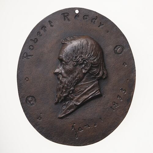 Portrait medal produced through the electrotyping method of Robert Ready by the artist G. A. Carter. The date of this portrait is normally given as 1879 as this is stated in Forrer's Biographical Dictionary, Vol.5 p.54. Unlike the medal illlustrated in that work, this example has a legend which bears the date Jan. 1 1873.