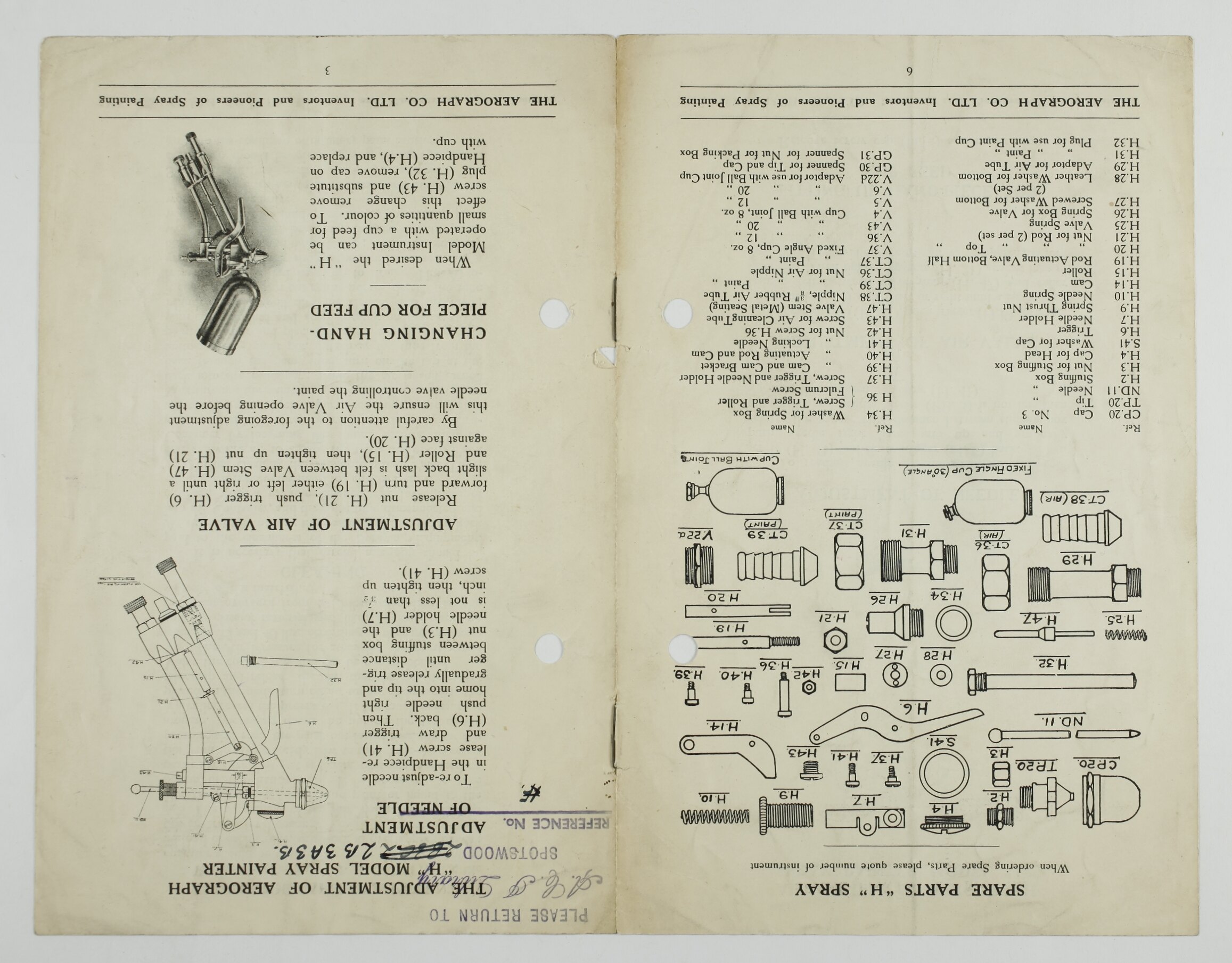 'THE ADJUSTMENT OF AEROGRAPH H MODEL SPRAY PAINTER. ADJUSTMENT OF NEEDLE.'