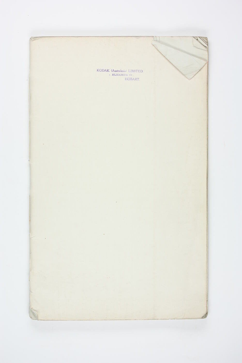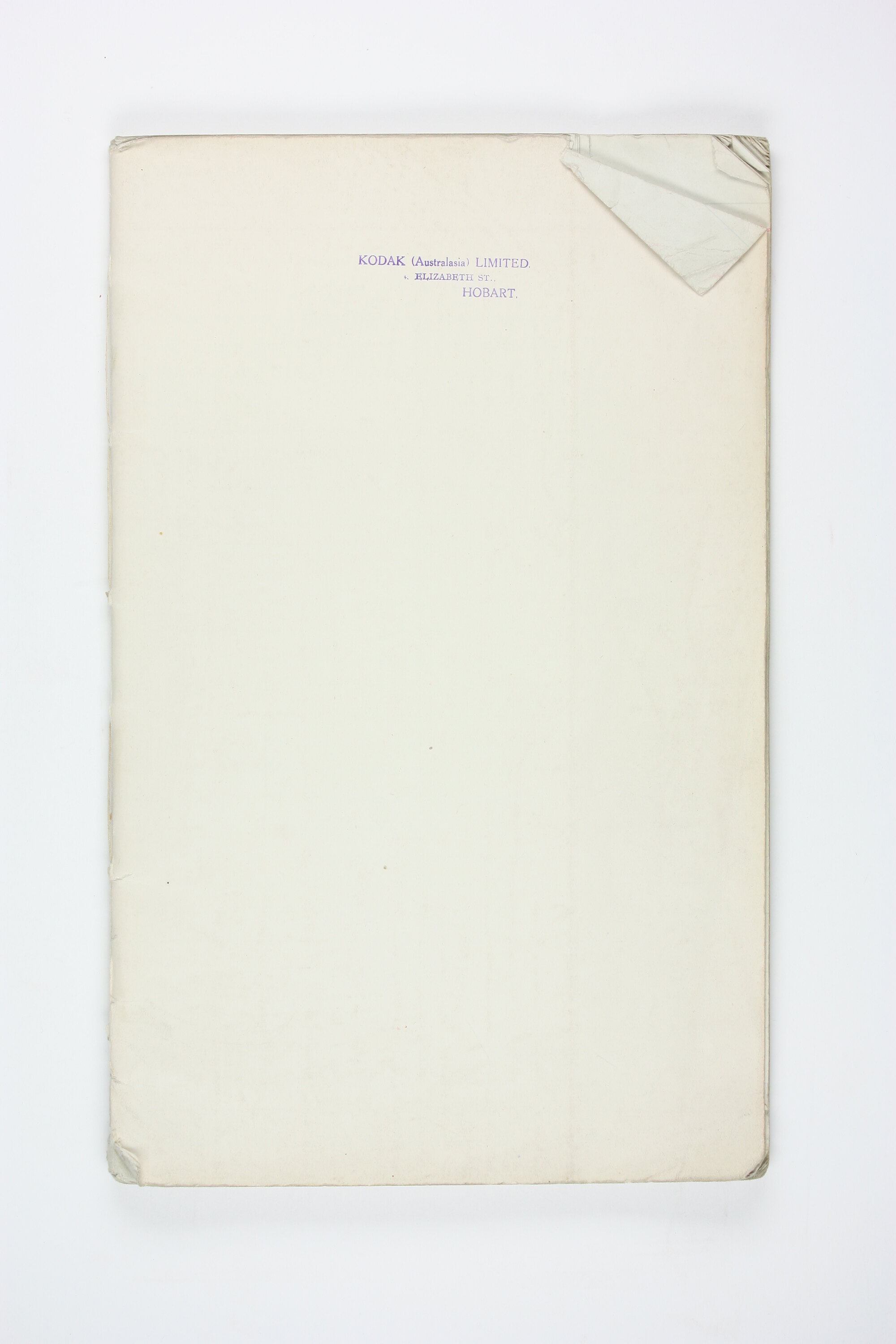 Front cover, stamped, black ink: 'KODAK (Australasia) LIMITED. / ELIZABETH ST., / HOBART.'
