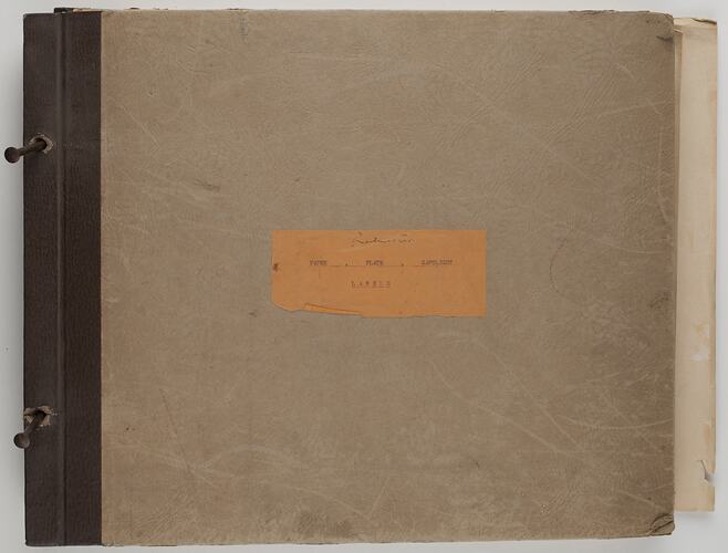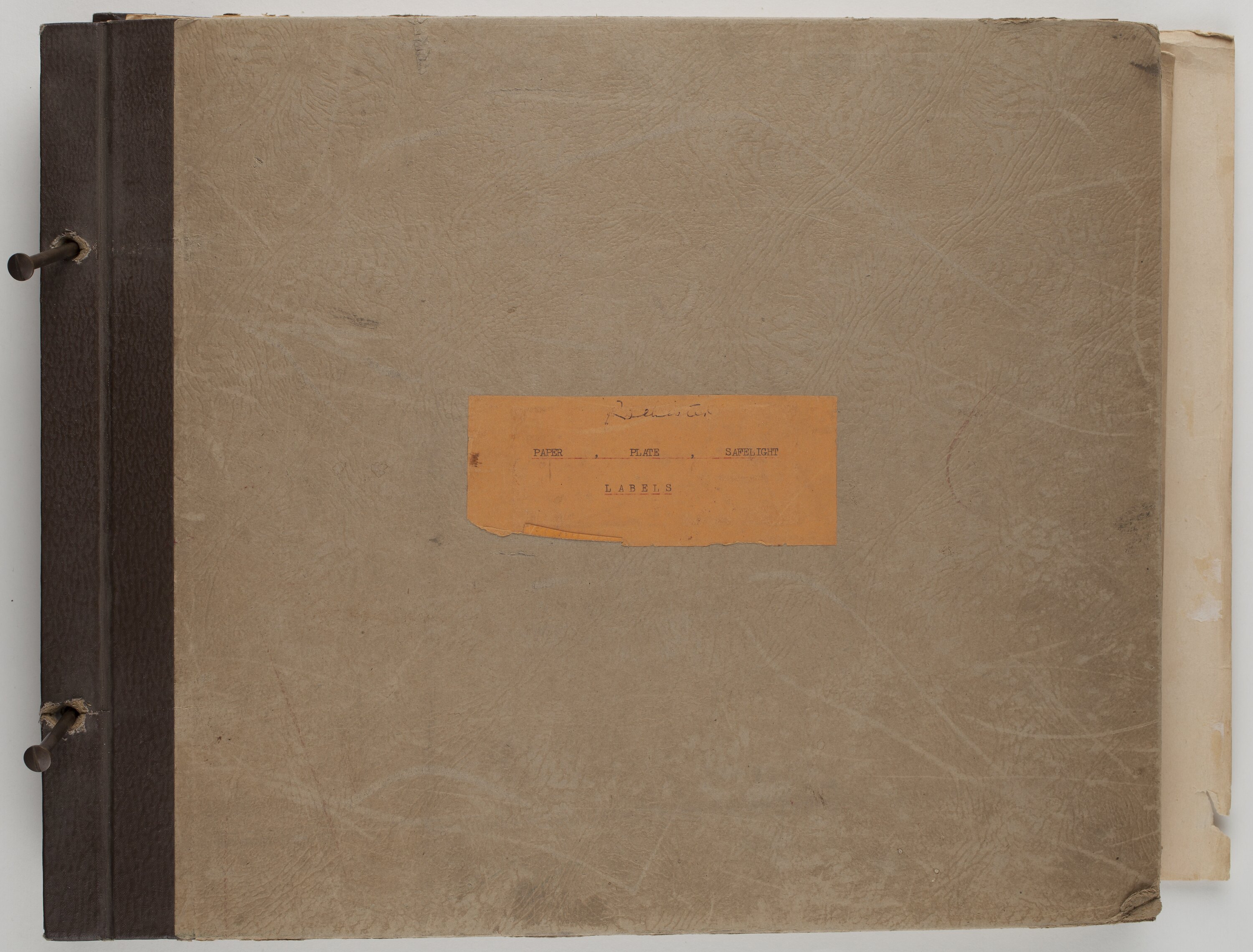 Front cover, label, typed, black ink: 'PAPER , PLATE , SAFELIGHT / LABELS' Front cover, handwritten, black ink: 'Rochester'