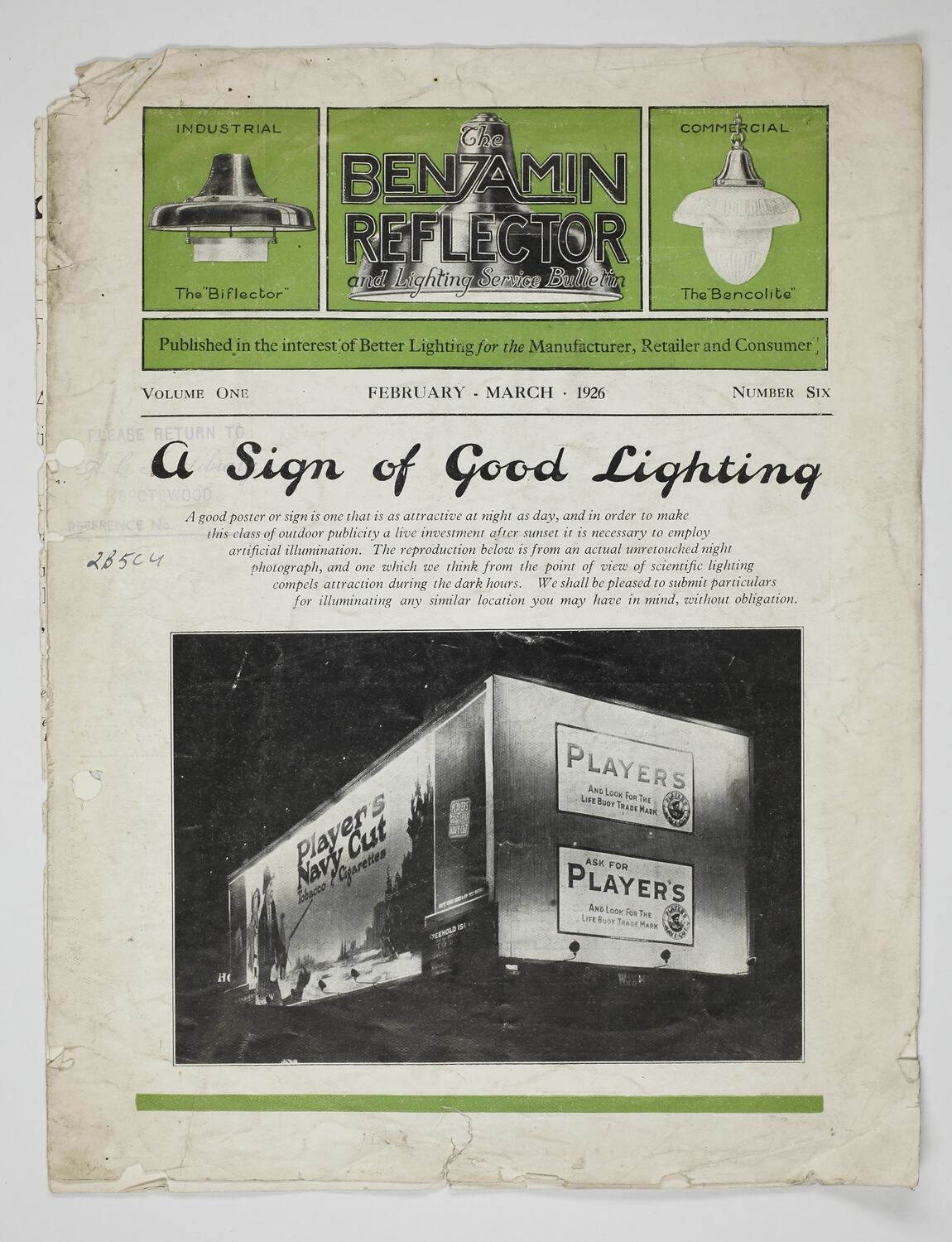 'BENJAMIN REFLECTOR and Lighting Service Bulletin. A Sign of Good Lighting.'