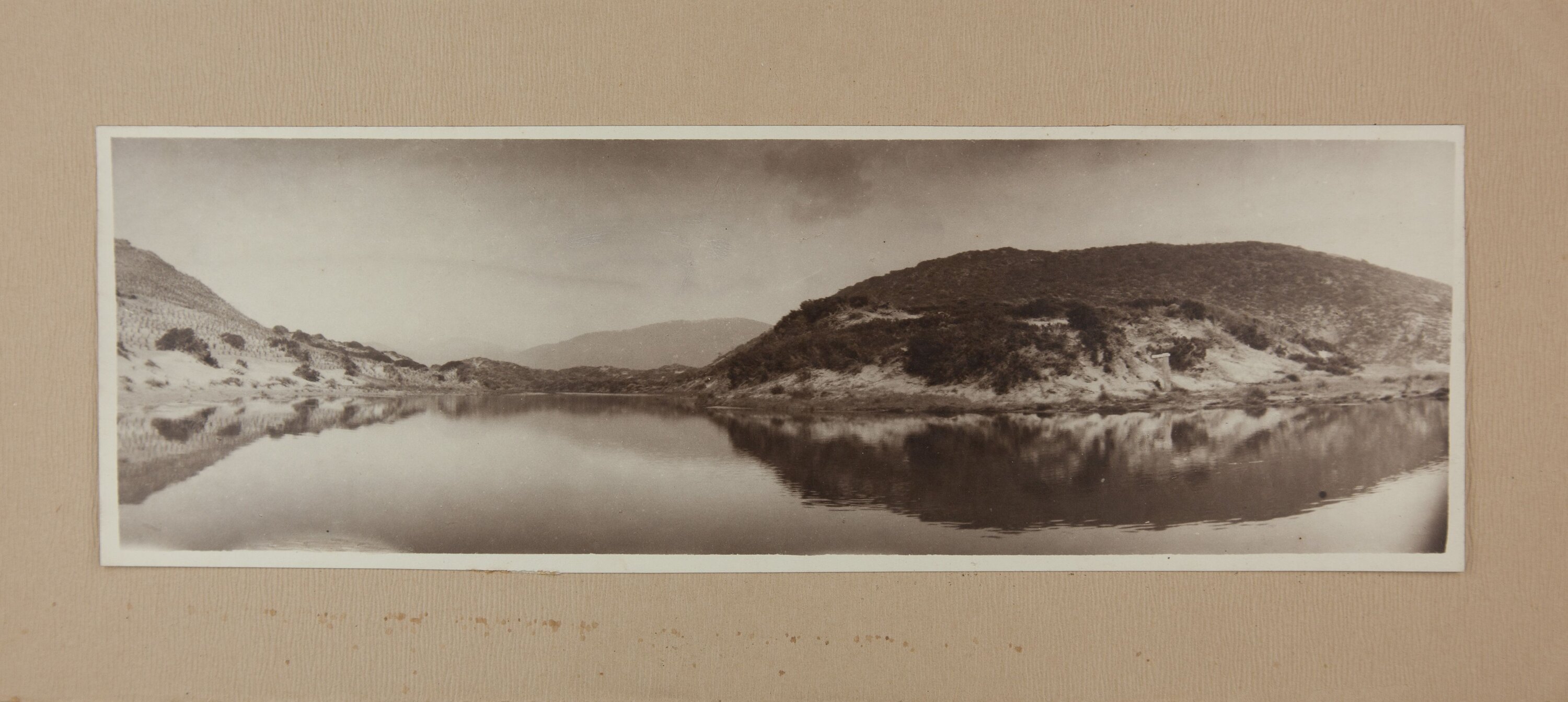 Sepia print mounted on textured board.