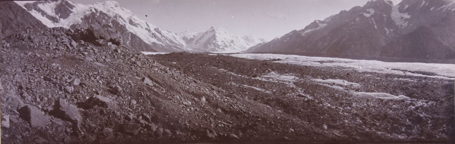 Handwritten on verso in pencil: Tasman Valley from the Moraine above Ball Hut.