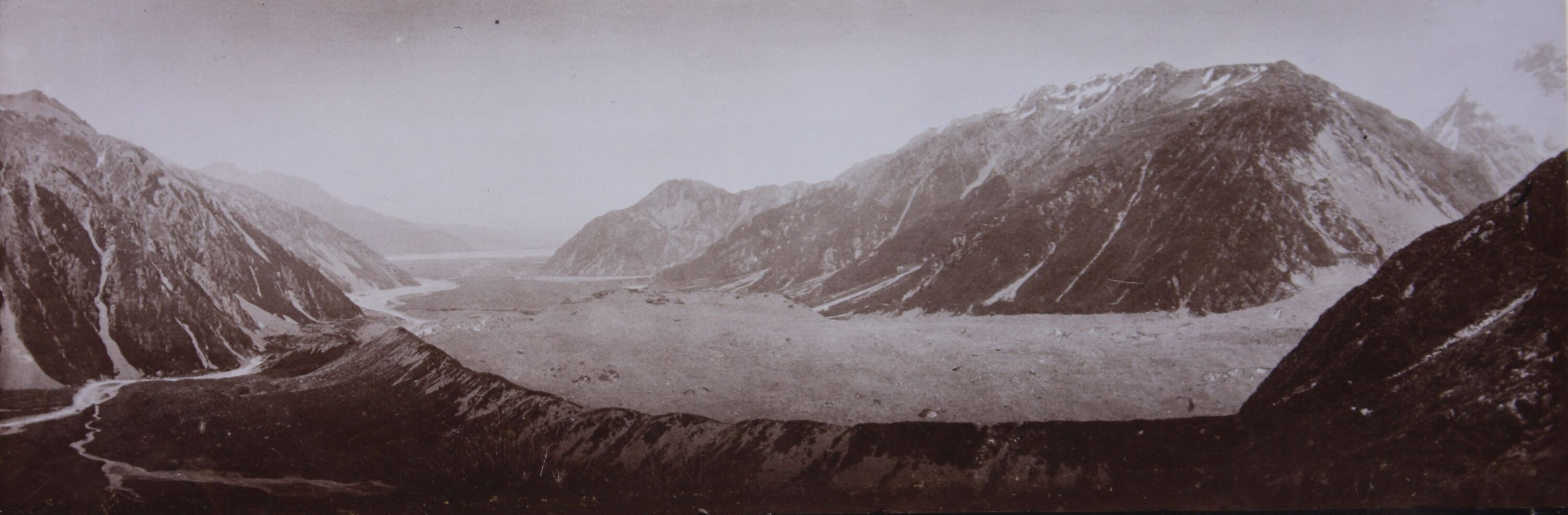 Handwritten on verso in pencil: Lateral moraine of Mueller glacier, Wakefield Ridge, Hooker, Pukaki, Sebastopol, Mueller Valley.