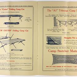 The Gair Manufacturing Co. Pty. Ltd. of Elizabeth St, Melbourne, were canvas goods manufacturers and warehousemen. They made deck chairs, camp stretchers and beds, folding tables, card tables, and awning hammocks.