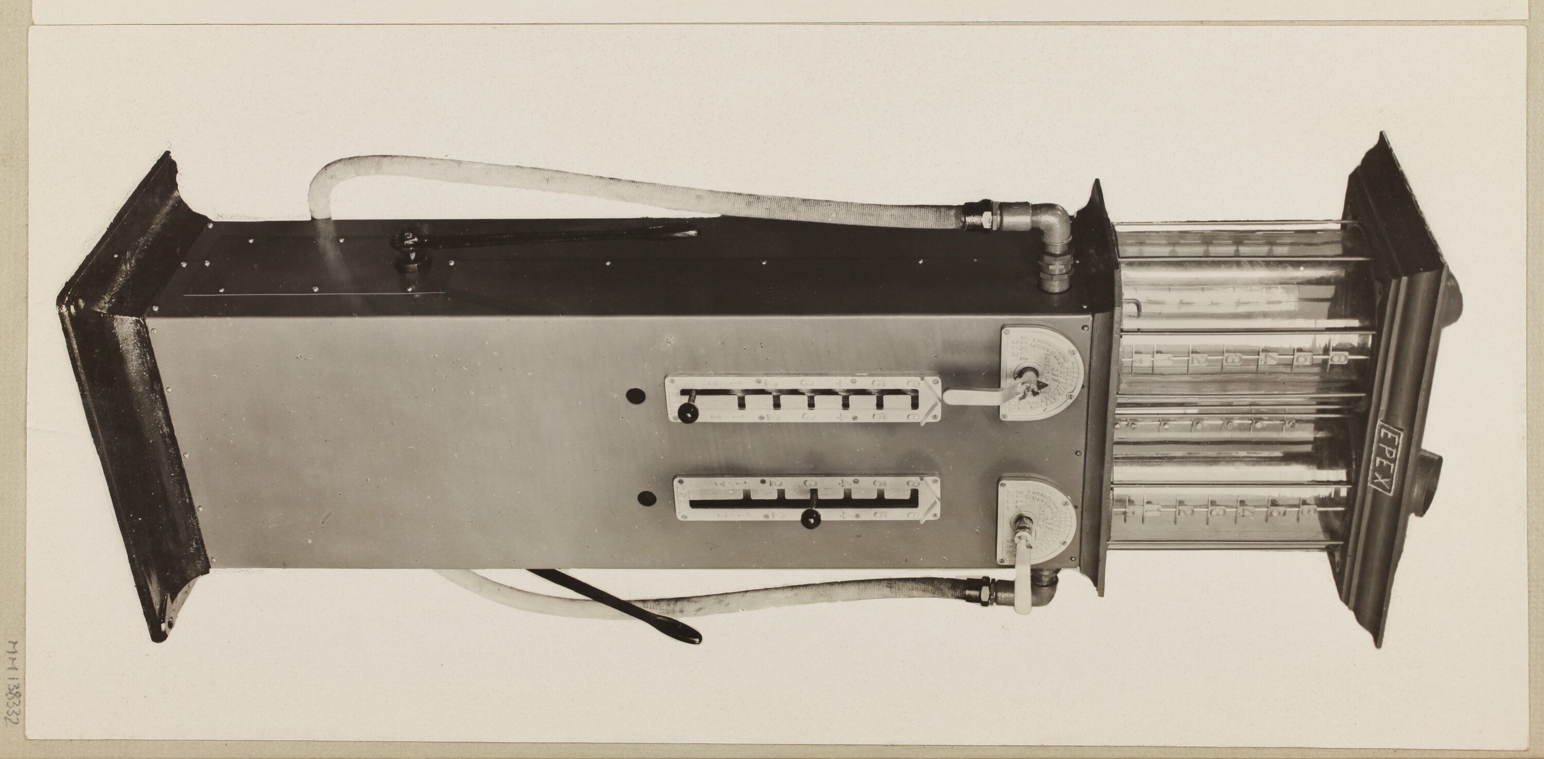 One of 59 black & white photographs contained in a photographic album. Images depict petrol pumps manufactured by Engineering Products Pty. Ltd., EPEX. The photographs are mounted to both sides of the album pages, some images have become detached from the page and are now housed separately.