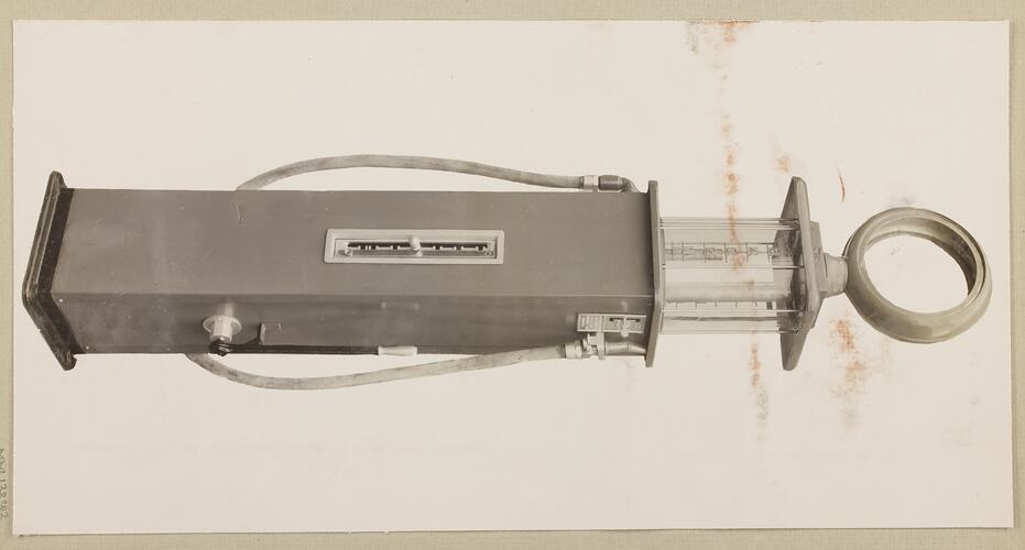 One of 59 black & white photographs contained in a photographic album. Images depict petrol pumps manufactured by Engineering Products Pty. Ltd., EPEX. The photographs are mounted to both sides of the album pages, some images have become detached from the page and are now housed separately.