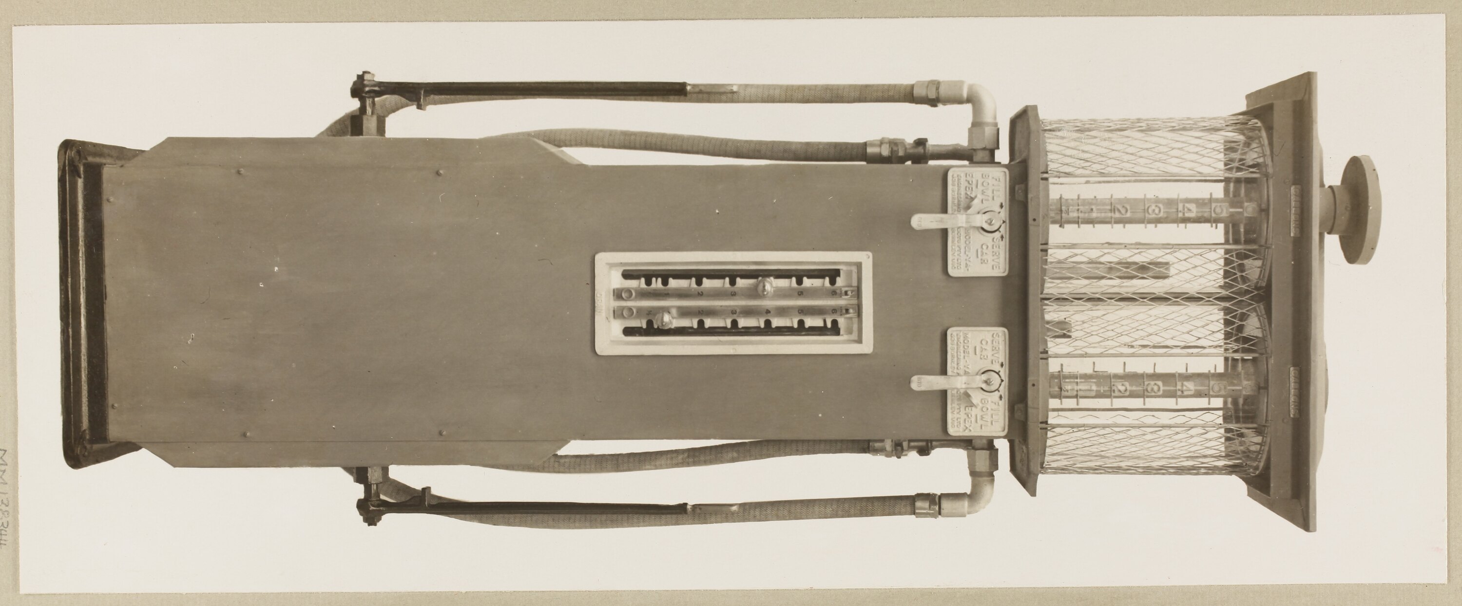 One of 59 black & white photographs contained in a photographic album. Images depict petrol pumps manufactured by Engineering Products Pty. Ltd., EPEX. The photographs are mounted to both sides of the album pages, some images have become detached from the page and are now housed separately.