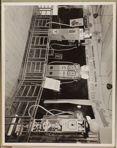 One of 59 black & white photographs contained in a photographic album. Images depict petrol pumps manufactured by Engineering Products Pty. Ltd., EPEX. The photographs are mounted to both sides of the album pages, some images have become detached from the page and are now housed separately.