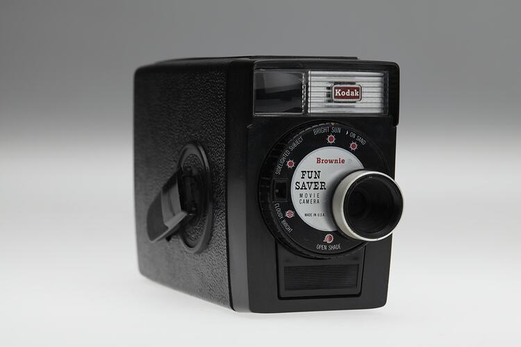Kodak Brownie Fun Saver movie camera, manufactured circa 1962-1967.