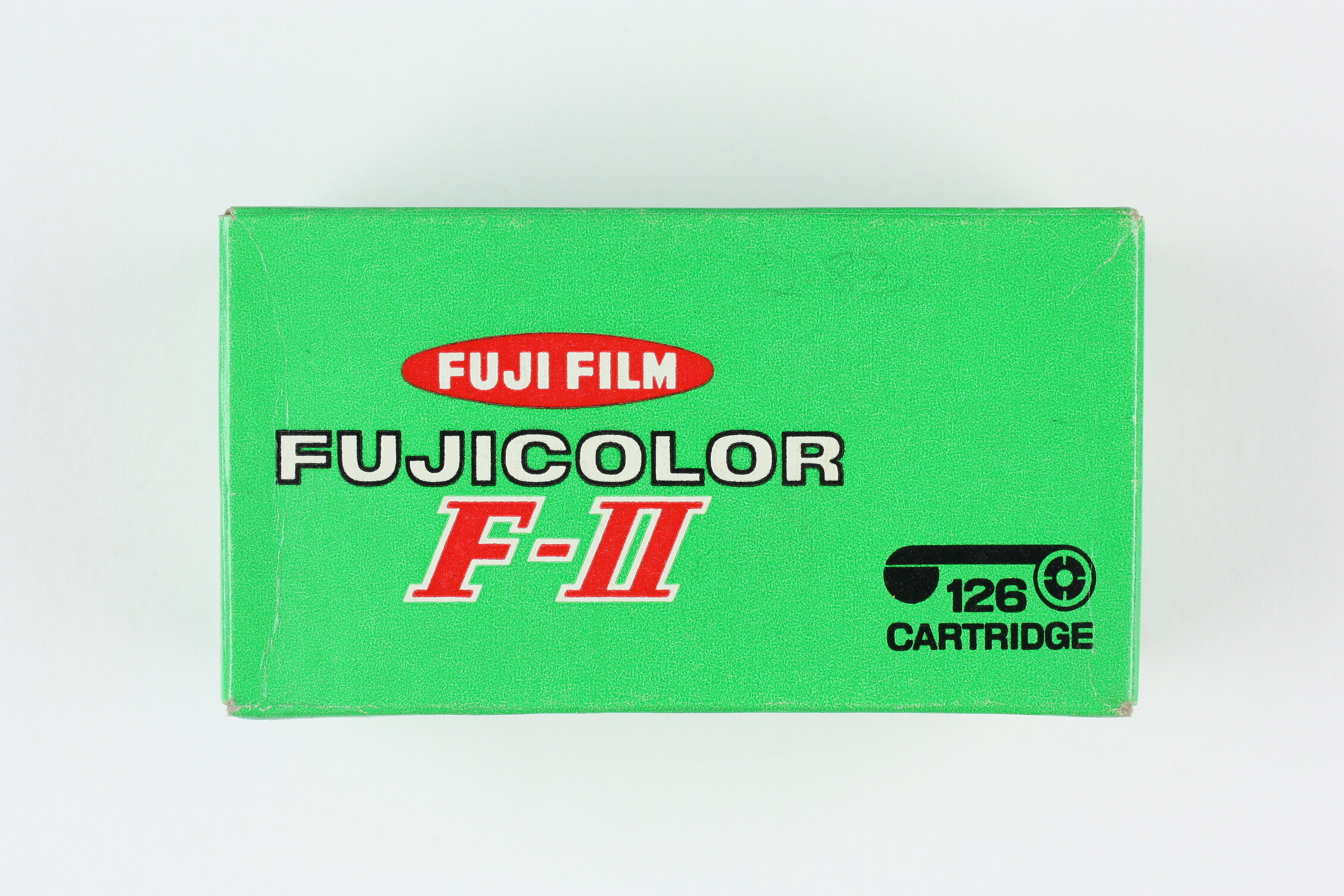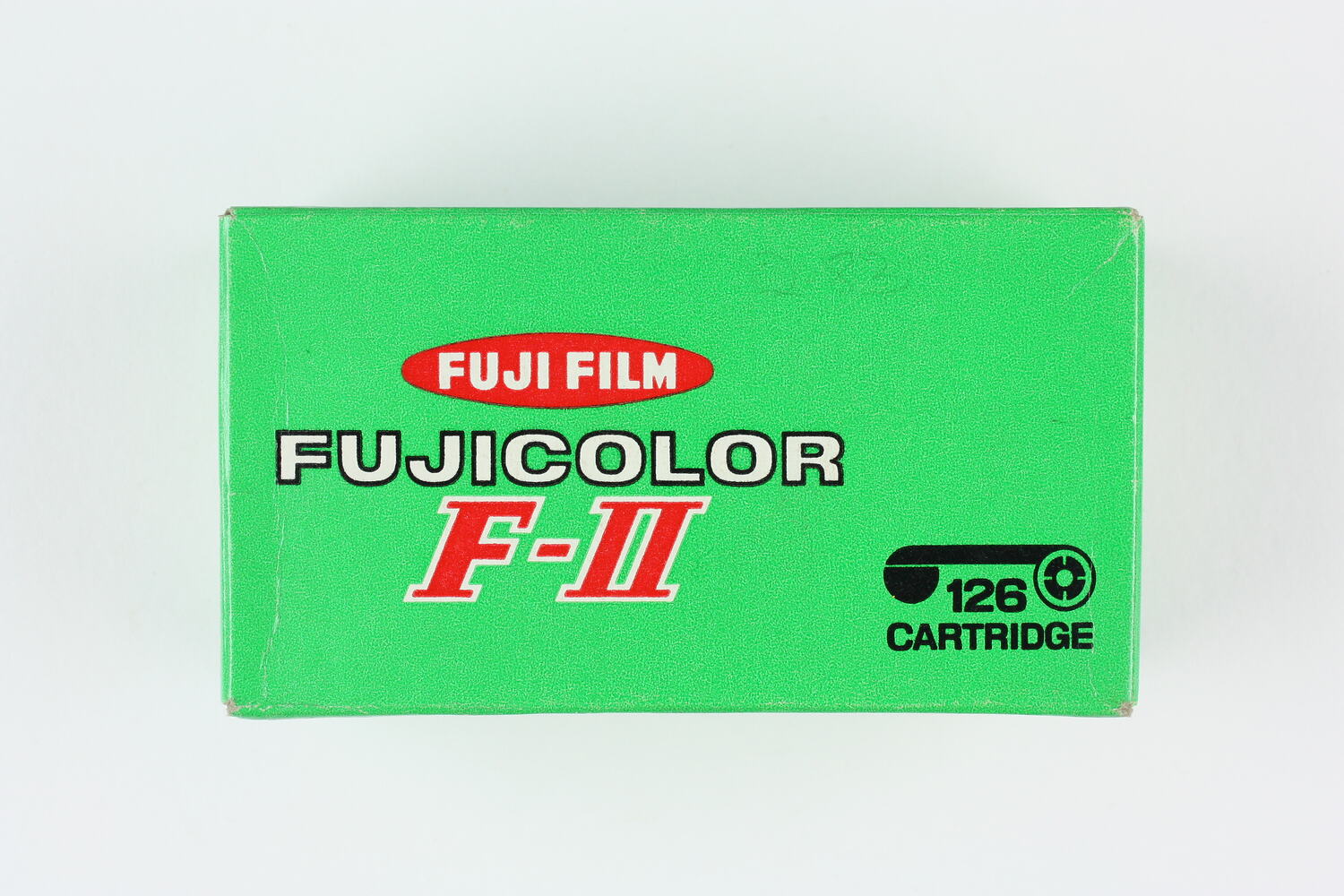 Front, printed: 'FUJI FILM / FUJICOLOR / F-II [graphic illustration of film cartridge] / 126 / CARTRIDGE'