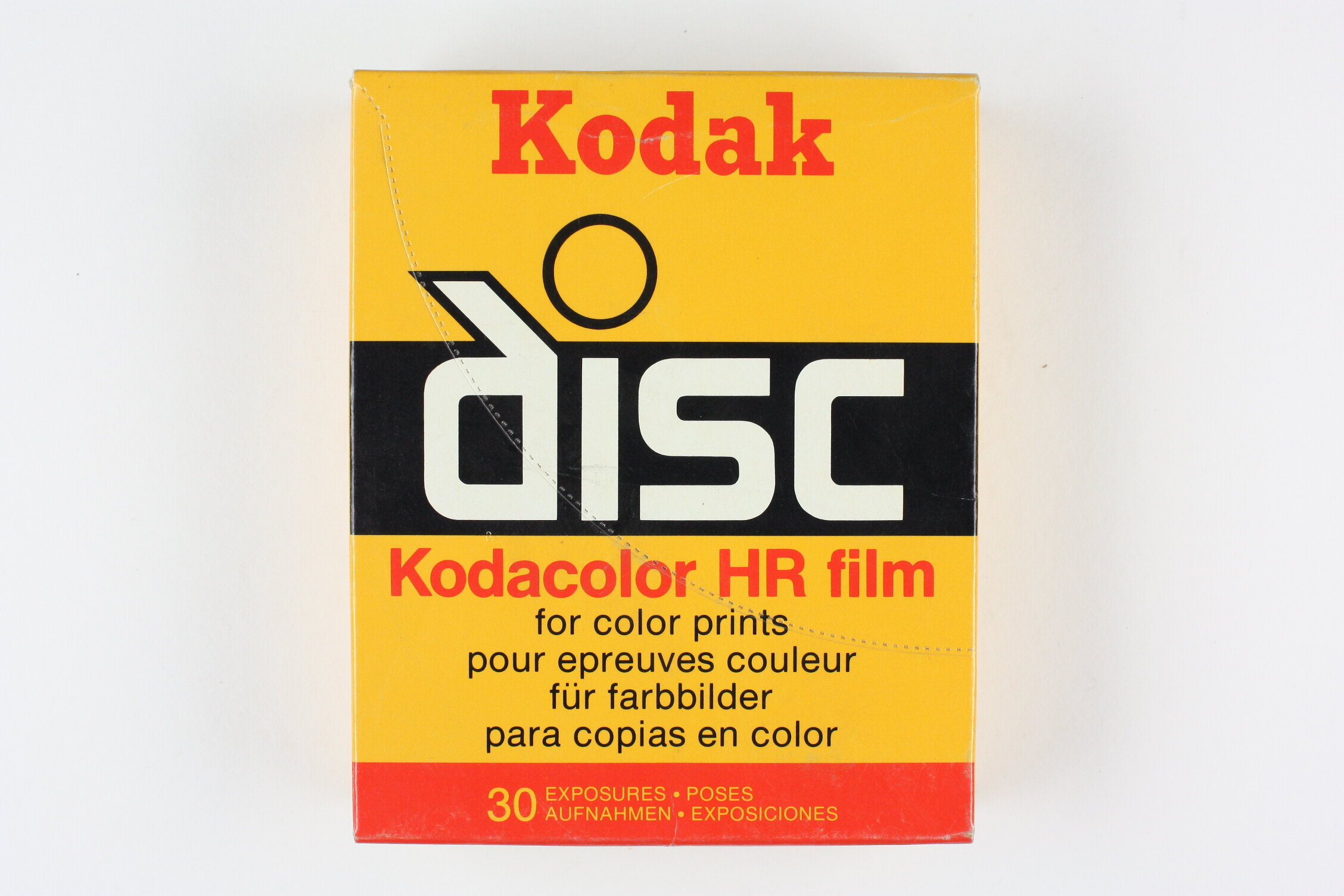 Box front, printed: 'Kodak / disc / Kodacolor HR film / for color prints / [...] 30 EXPOSURES . POSES / [...]'