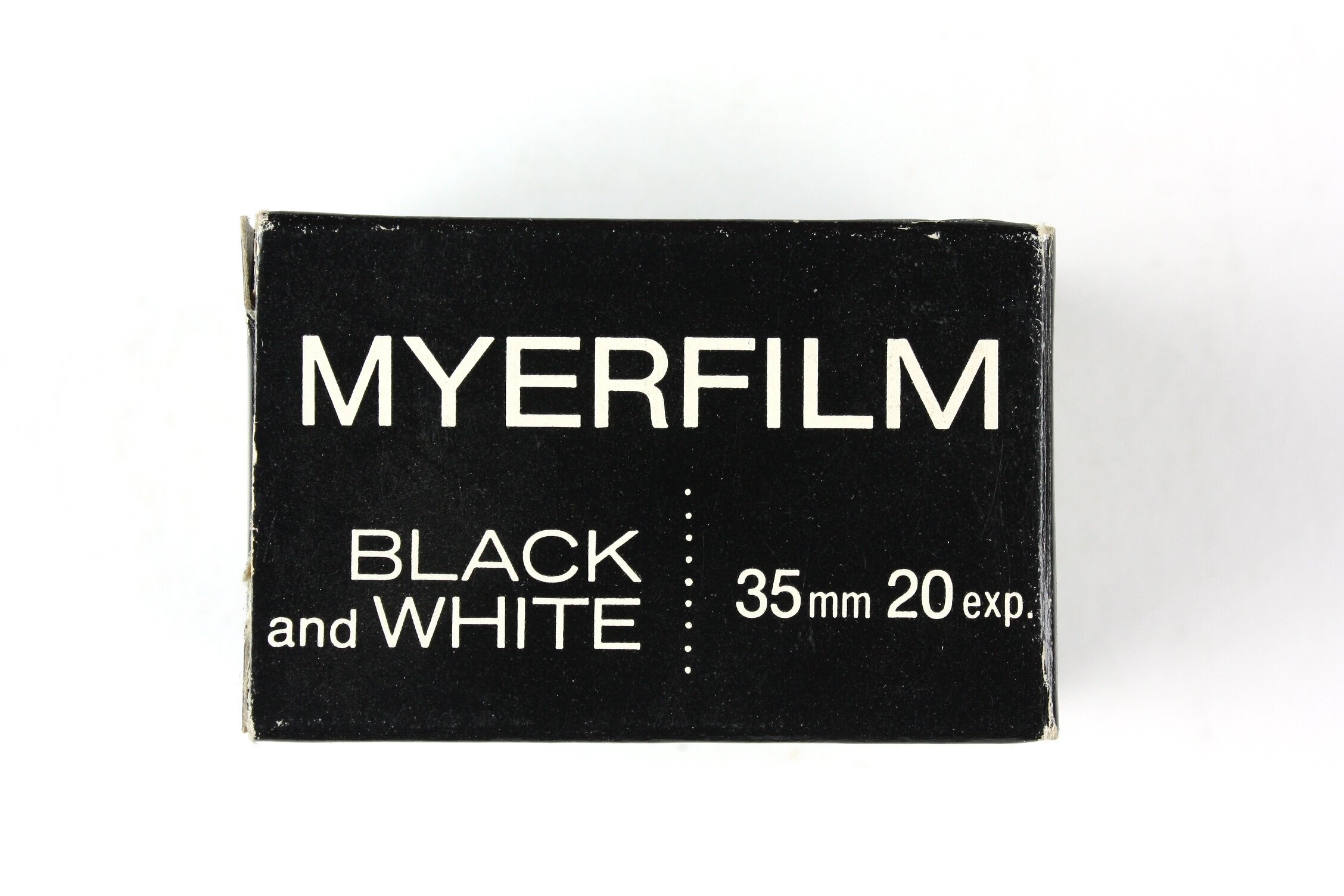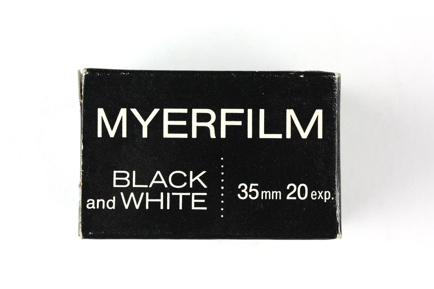 Front, printed: 'MYERFILM / BLACK / and WHITE / 35mm 20 exp.'