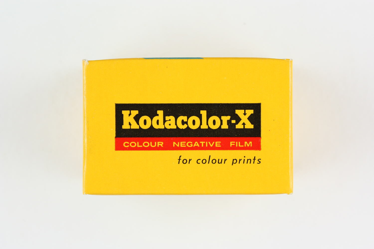 Front, printed: 'Kodacolor-X / COLOUR NEGATIVE FILM / for colour prints' Side, printed: 'Kodacolor-X / FILM / for colour prints / DAYLIGHT OR / BLUE FLASH / CX135-12' Top, printed: 'Kodak / USE BLUE BULBS / FOR FLASH'