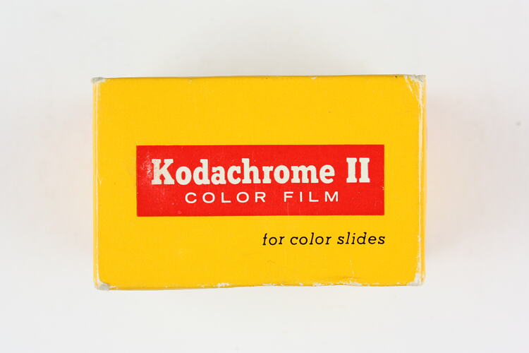 Front, printed: 'Kodachrome II / COLOR FILM / for color slides' Side, printed: 'Kodachrome II / FILM / for / color slides / 20 EXPOSURES / K135-20P'
