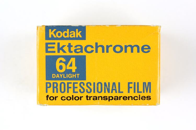 Front, printed: 'Kodak / EKTACHROME / 64 / DAYLIGHT / PROFESSIONAL FILM / for color transparencies'