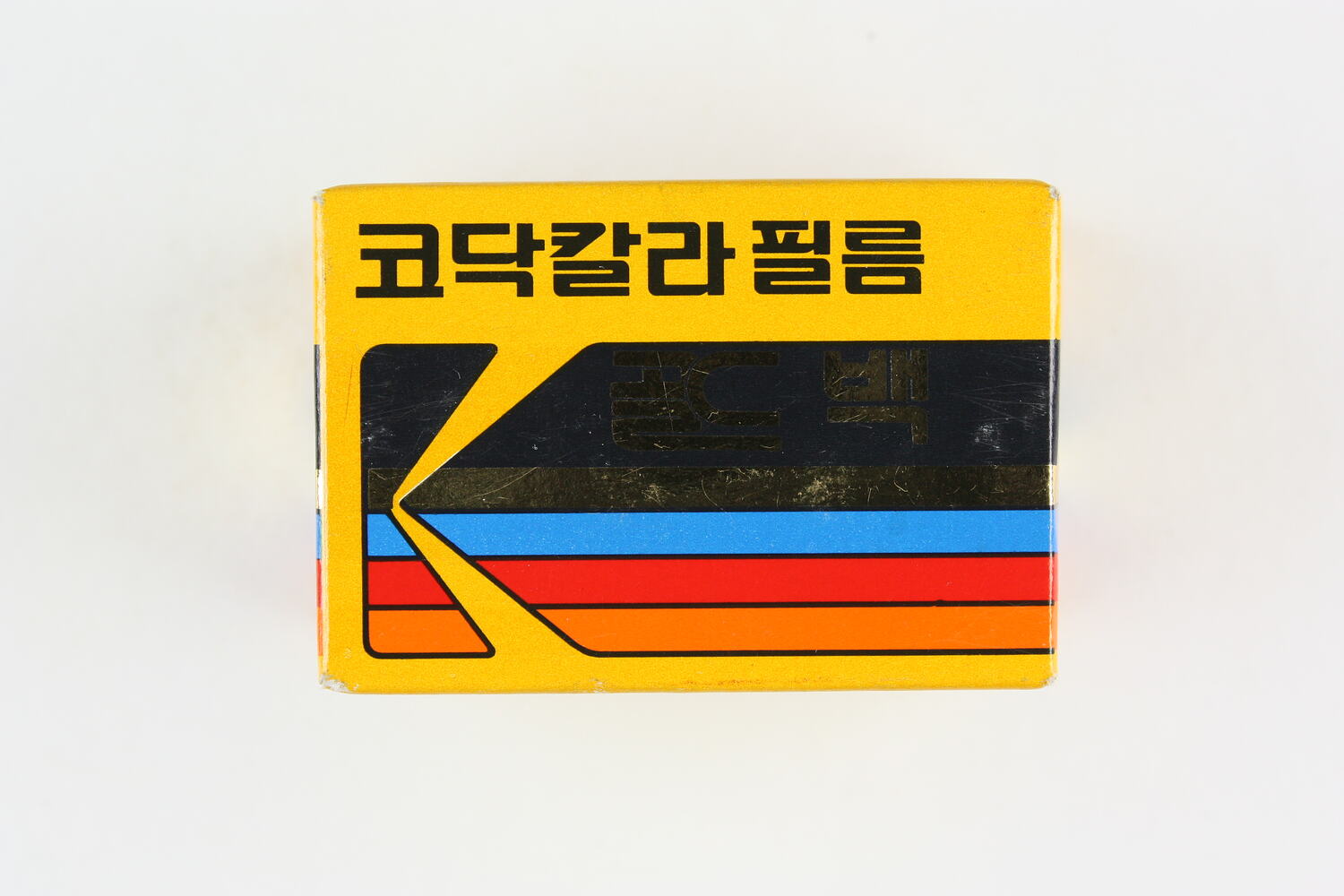 Front, printed: '[Korean script] / [Kodak 'K' logo made from 5 strips of colour (black, gold, blue, red, orange ink) and Korean script plus written inside it]'