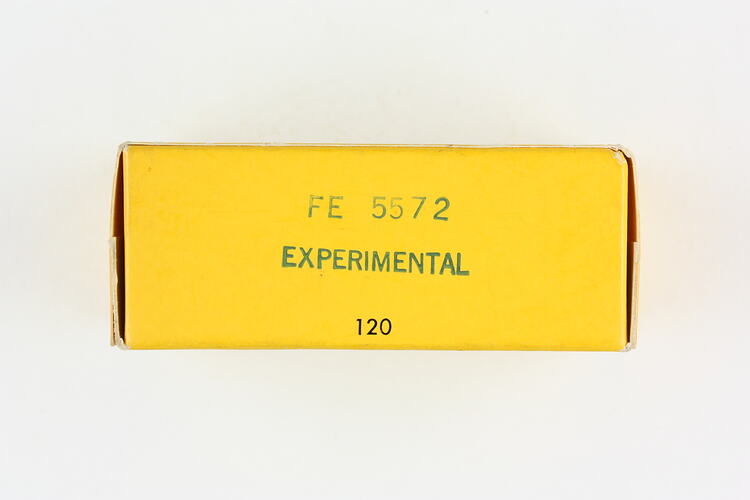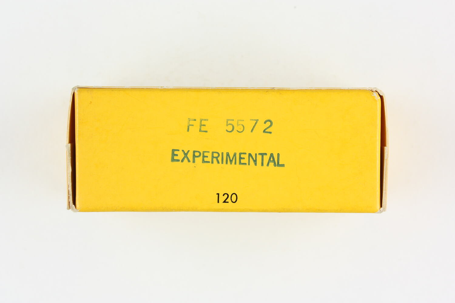 Kodak experimental 120 format film cartridge in original box. The box is stamped with the code 'FE 5572' and marked 'For Company Use Only'.