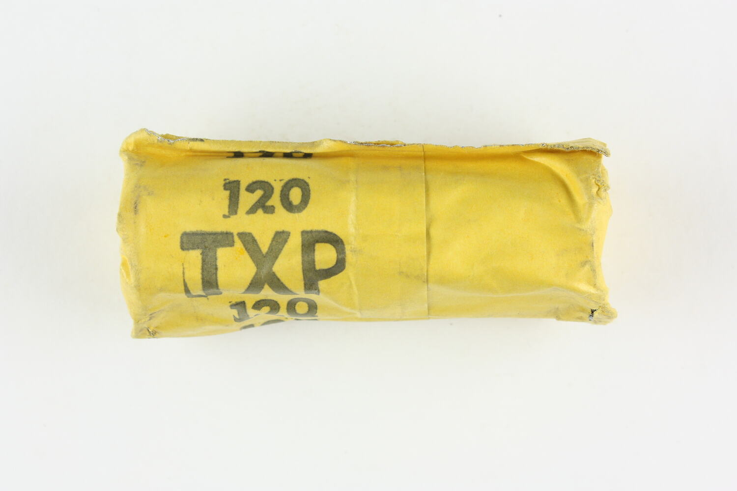 Kodak Tri-X Pan, professional black and white 120 format film cartridge in original foil packet, manufactured from the 1960s to 1980s. Product code TXP 120.
