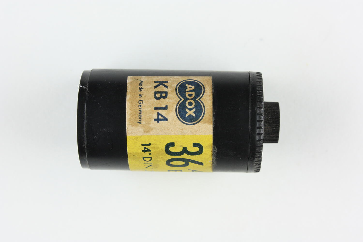 Label, printed: 'ADOX 36 Aufn. / Exp. / KB 14 / Made in Germany 14 [circular degree symbol] DIN 20ASA'