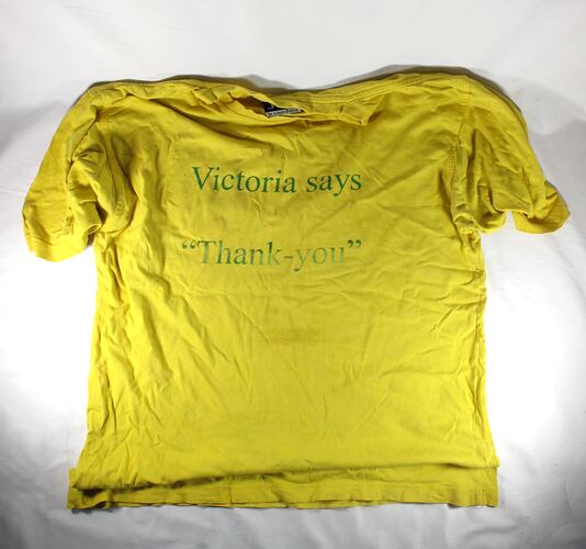 T-Shirt worn by Peter Auty, following the Black Saturday bushfires, February 2009.