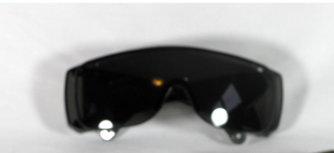 Protective glasses (with home-made pouch) worn by Peter Auty, a CFA volunteer, on Black Saturday, 7 February 2009.