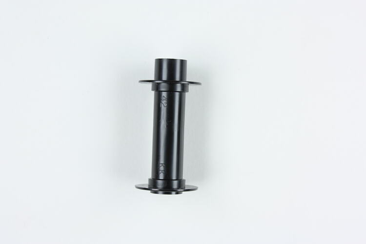 An empty, black plastic 35mm film spool for use in a 135 format / 35mm film cartridge. This spool comes from one of the last production runs at the Kodak Australasia Pty Ltd factory at Coburg in 2004.