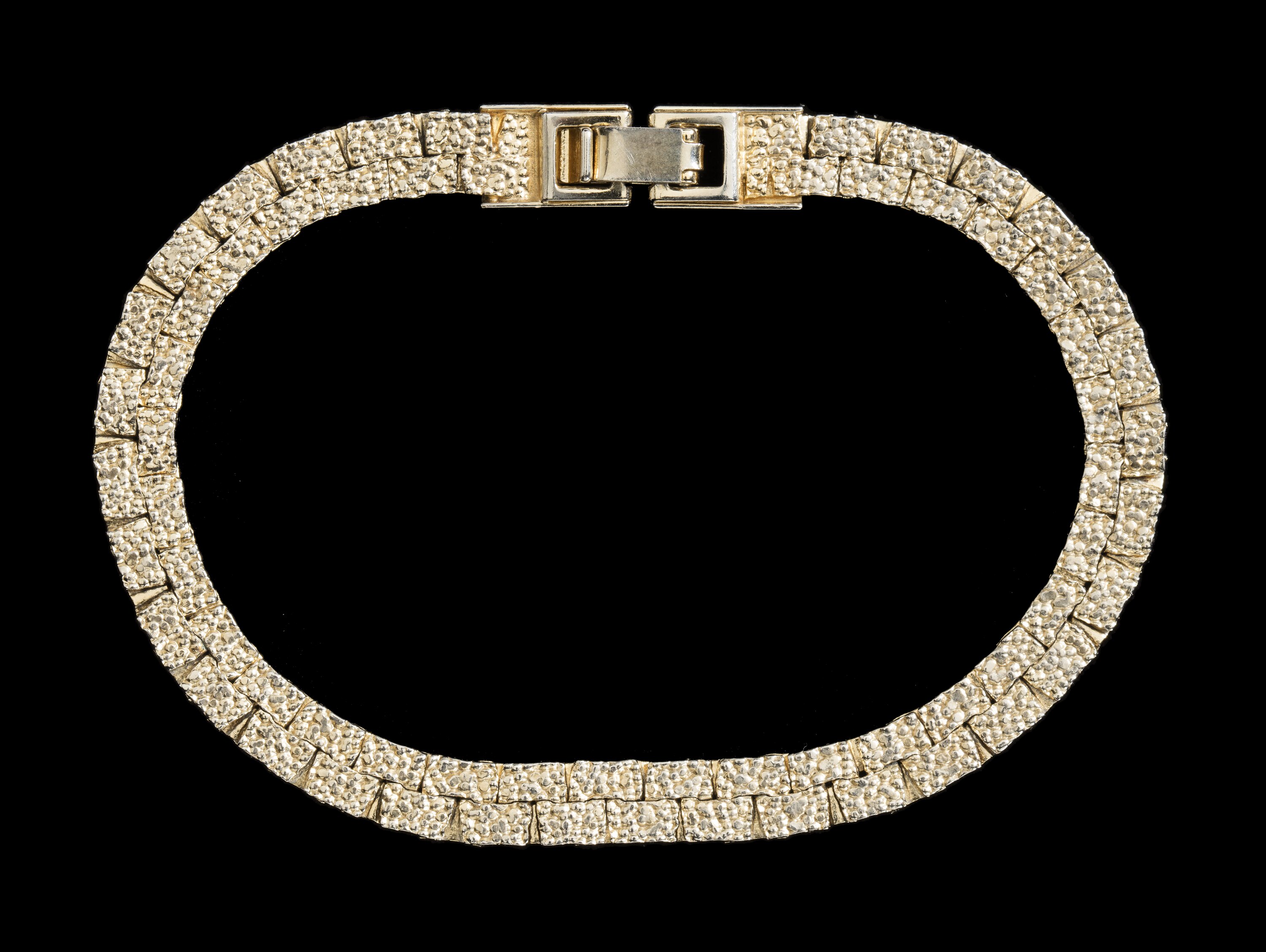 Pale gold metal bracelet, possibly worn by Bernice Kopple as part of one of her cabaret acts between the 1960s and 1970s. Bernice migrated from Scotland to Australia in 1950.