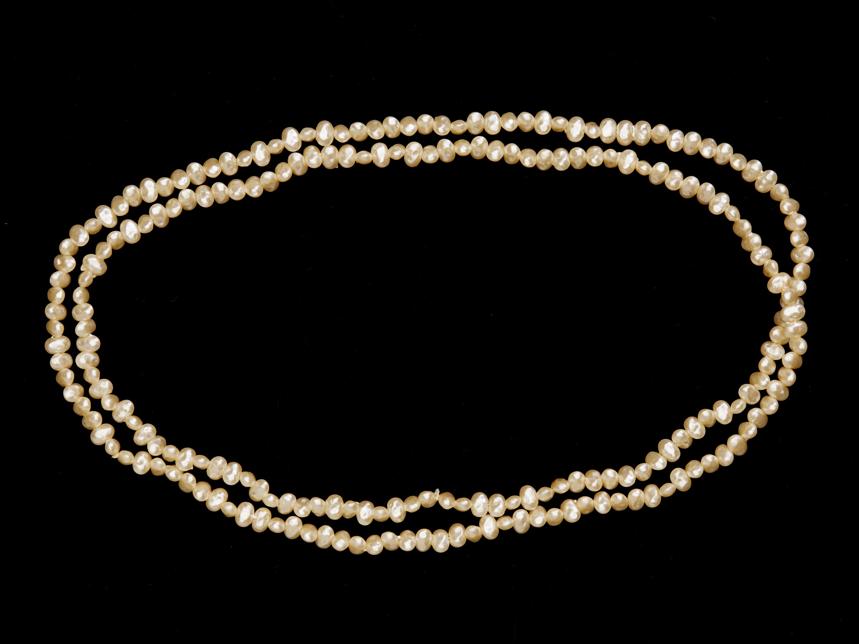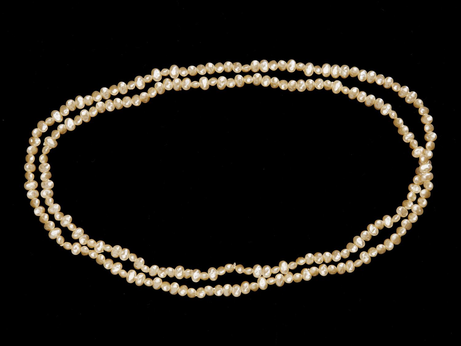 Single strand cream-coloured, regular shaped, pearl necklace.